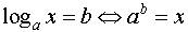 que se lee : "el logaritmo en base a del número x es b" , o también : "el número b se llama logaritmo del número x respecto de la base a